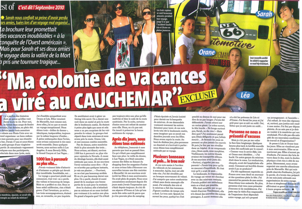 En 2009, deux adolescentes ont trouvé la mort dans un accident de la route alors qu’elles étaient en colonie de vacances aux Etats-Unis. Leurs parents envisagent de porter plainte.